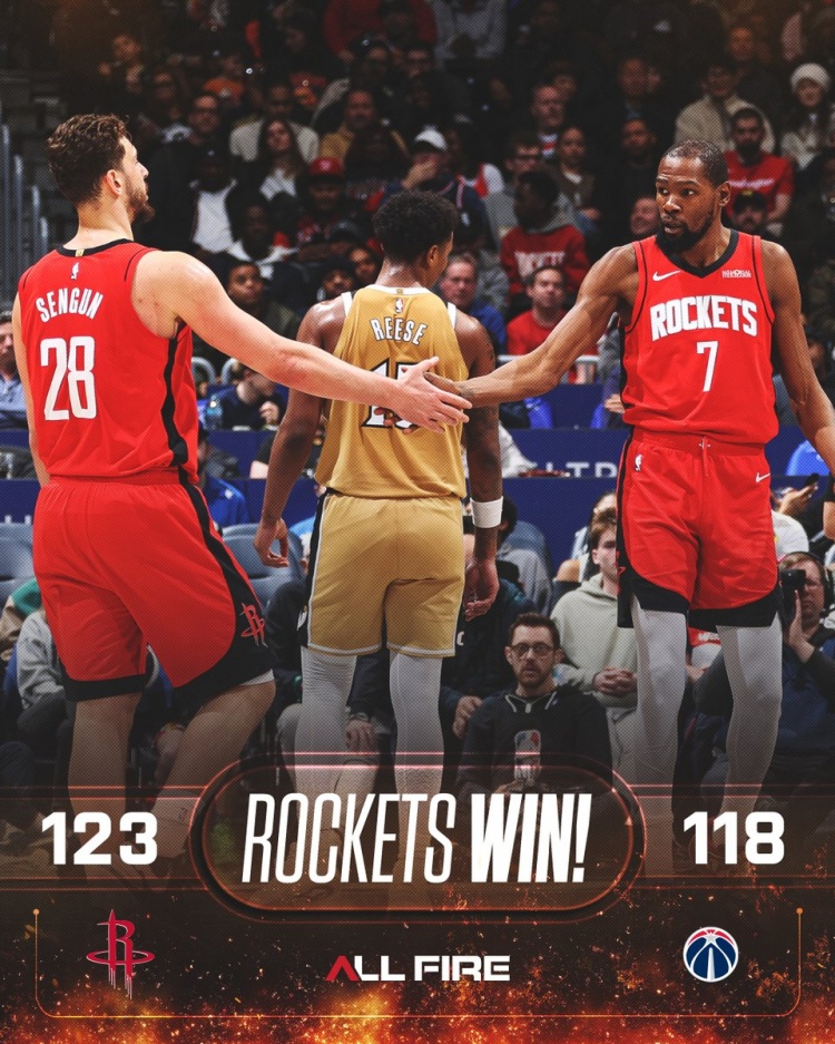 赛后火箭公布本场比赛赢球海报,杜兰特与申京携手登上封面。